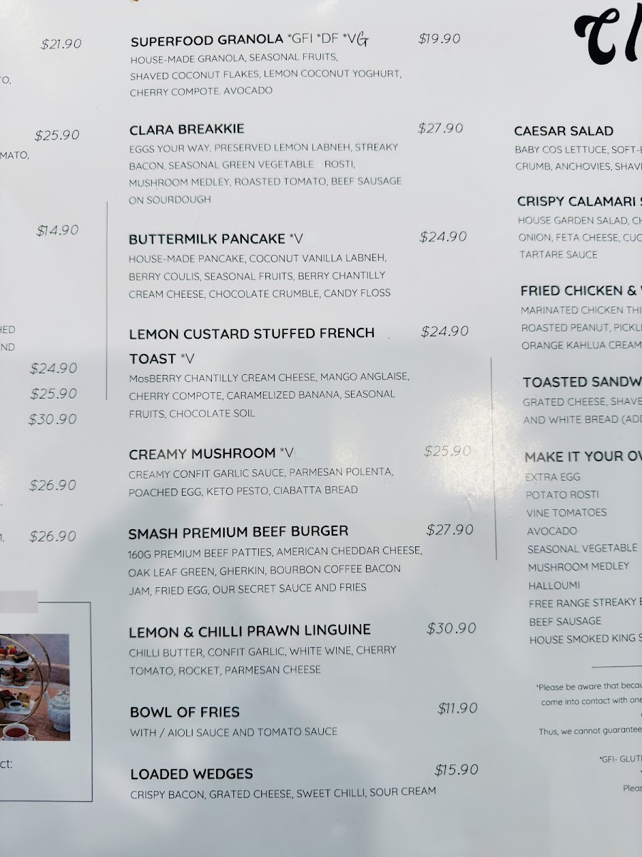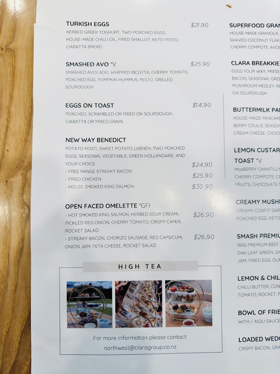 Clara Café Northwest Menu